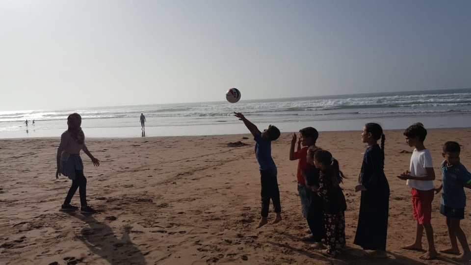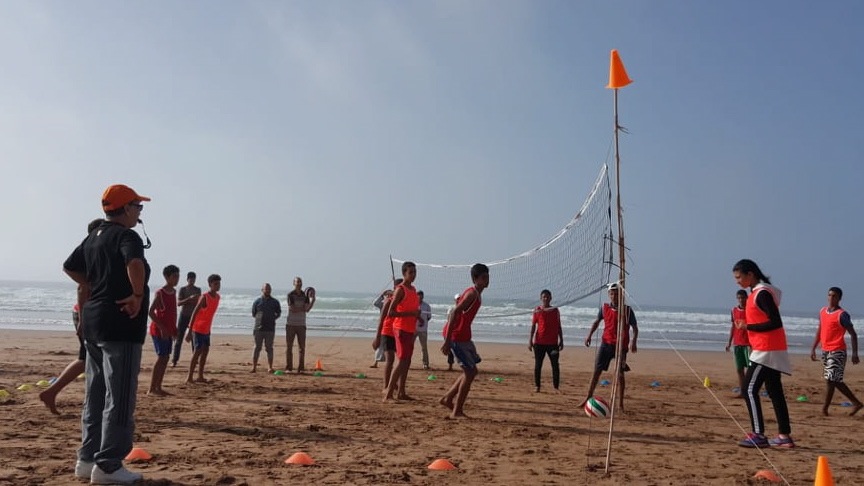 À Massa, dans le sud du Maroc, se sont tenues début octobre 2019 deux journées de sport pour les jeunes et les femmes. Saadia Ait Sghair, membre de SPORTIS, a répondu à l’invitation des associations Talatoungaref et Kasbat Alrech. Saadia, professeur d’EPS à la retraite, est régulièrement présente lors des actions à Moulay-Bousselham. Il est d’ailleurs facile de reconnaître sur ces images les liens avec le projet : la plage, le volley, les jeunes… Il y a pourtant près de 1000 km entre Moulay-Bousselham (entre Tanger et Rabat) et Massa (au sud de Agadir). Bravo à Saadia pour cette initiative dont on espère des suites.