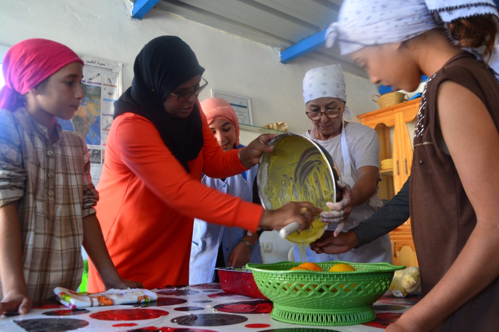 En complément des séquences de sport dans et hors de l’école (football, volley-ball, rugby, jeux d’athlétisme), Nezha a animé un atelier TABLE RONDE avec les jeunes filles de plus de 10 ans sur le thème « Hygiène / Prendre soin de son corps ».